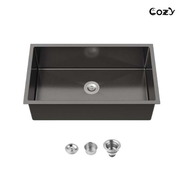 Stainless Steel Kitchen Sink, 30″x22″ Single Bowl, Overmount Handmade Sink in Black, with Cutting Board, Colander, SS-BL01D-302208-2