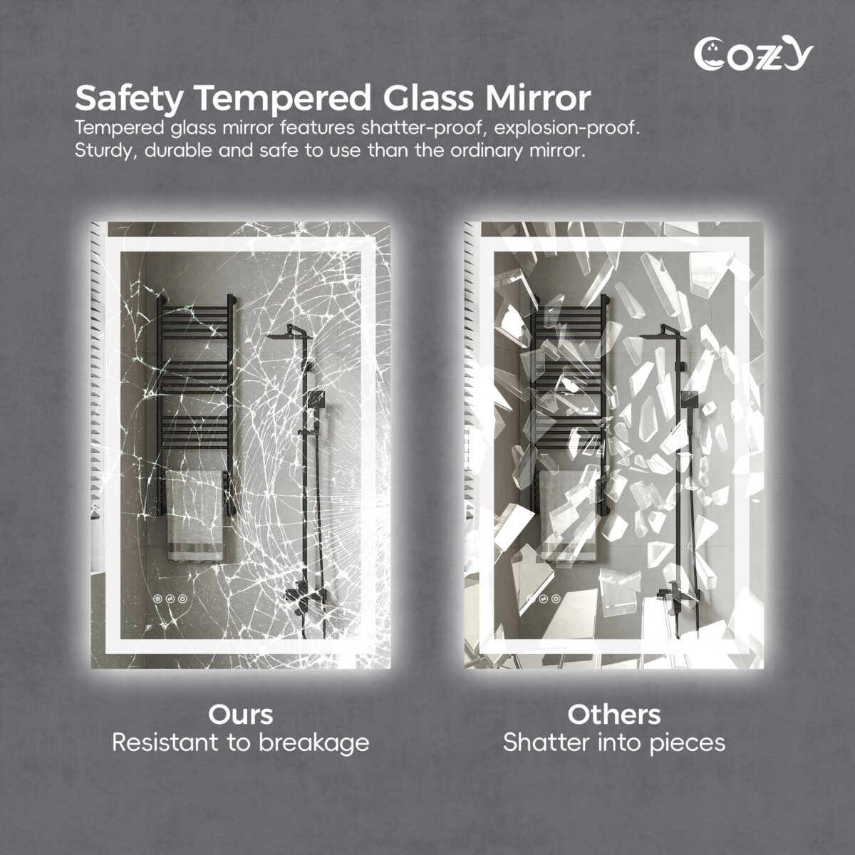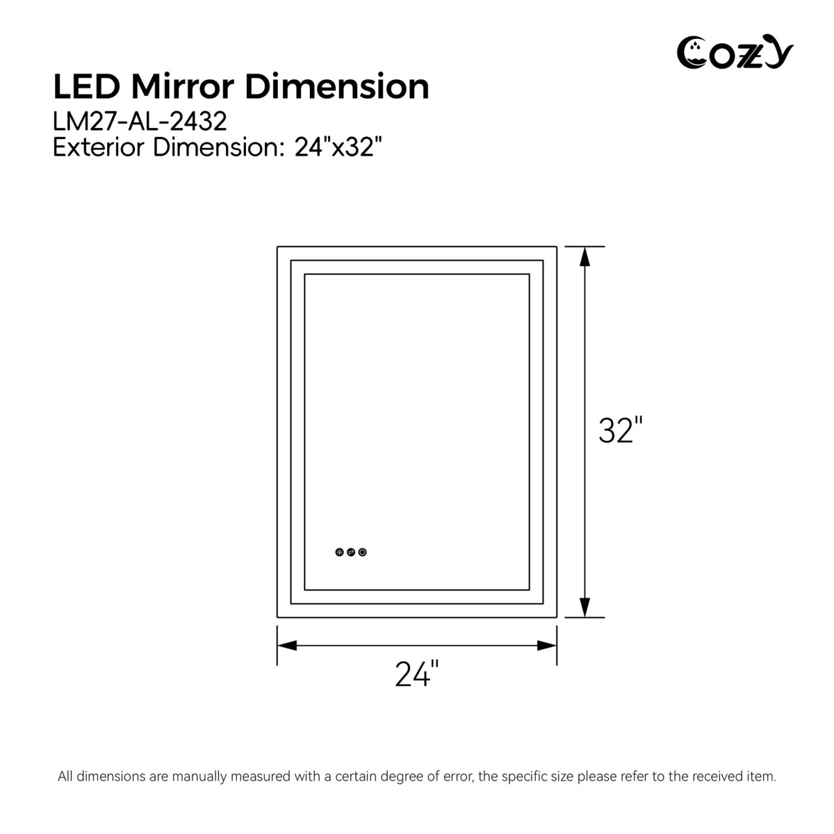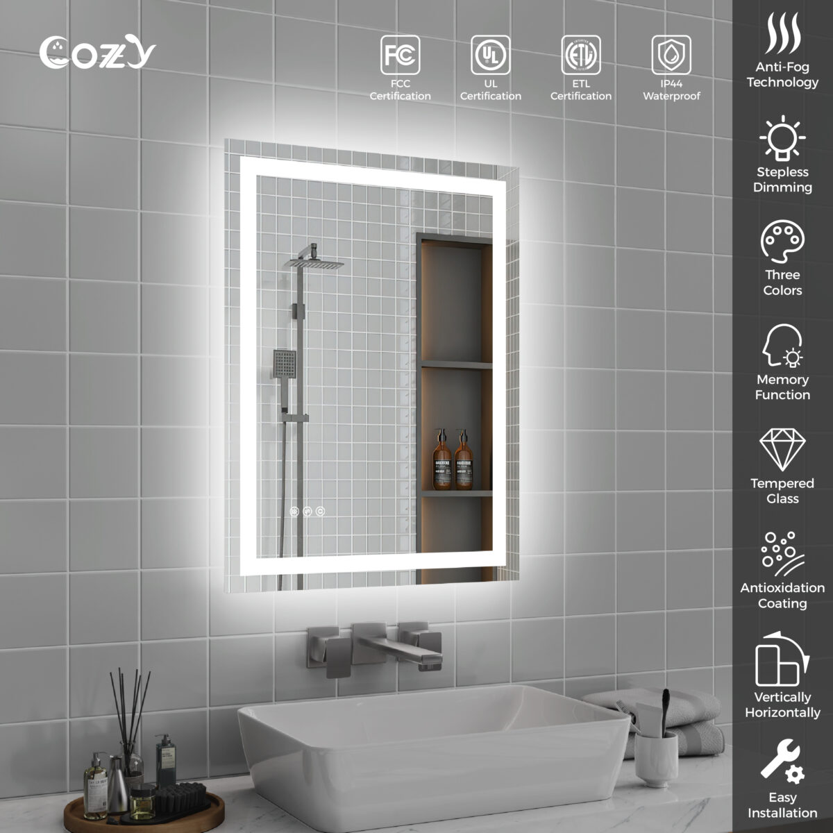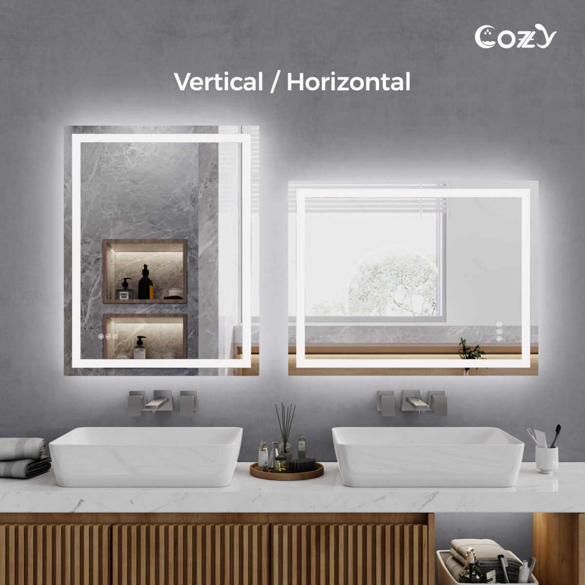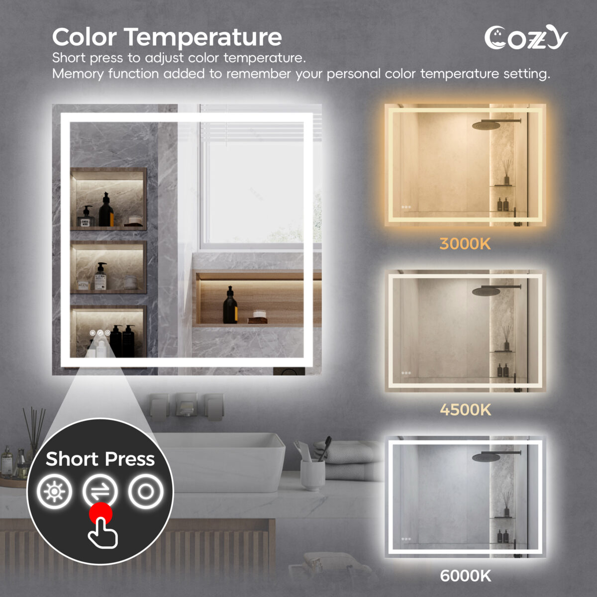 24″x32″ LED Vanity Mirror, Front & Back Lit, Color Temp Adjustable, Dimmable, Anti-Fog, Waterproof, CRI90+, Shatter-Proof, Easy Install