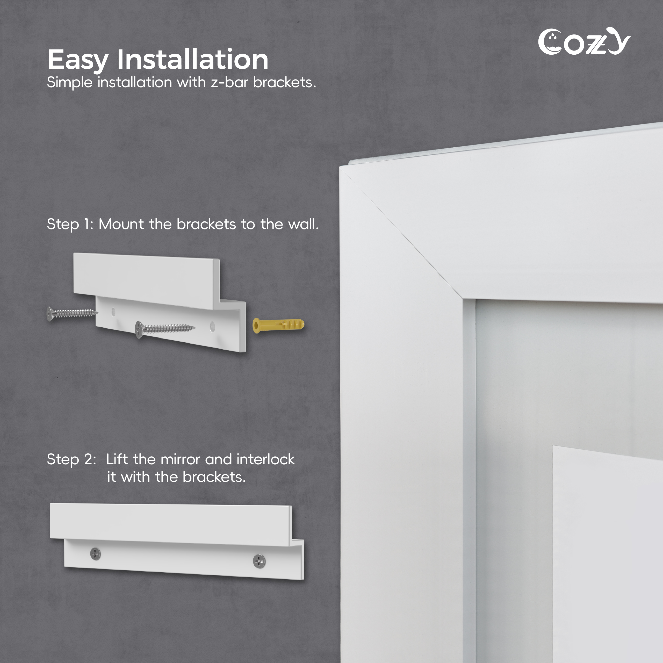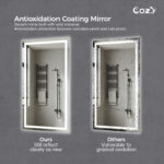 This bathroom mirror features a sleek design and advanced technology for a superior user experience. It offers three color options: warm white, natural light, and warm, all with adjustable brightness settings for a customized atmosphere. The mirror is equipped with touch sensors for easy operation and a memory function that remembers your preferred lighting settings. It also includes a fast and safe defogging feature, ensuring a clear view at all times. The mirror is UL/ETL certified and IP44 waterproof, making it safe and reliable for bathroom use. The tempered glass construction ensures durability, while the anti-oxidation coating protects against corrosion. This mirror is easy to install, both vertically and horizontally, making it a versatile addition to any bathroom.