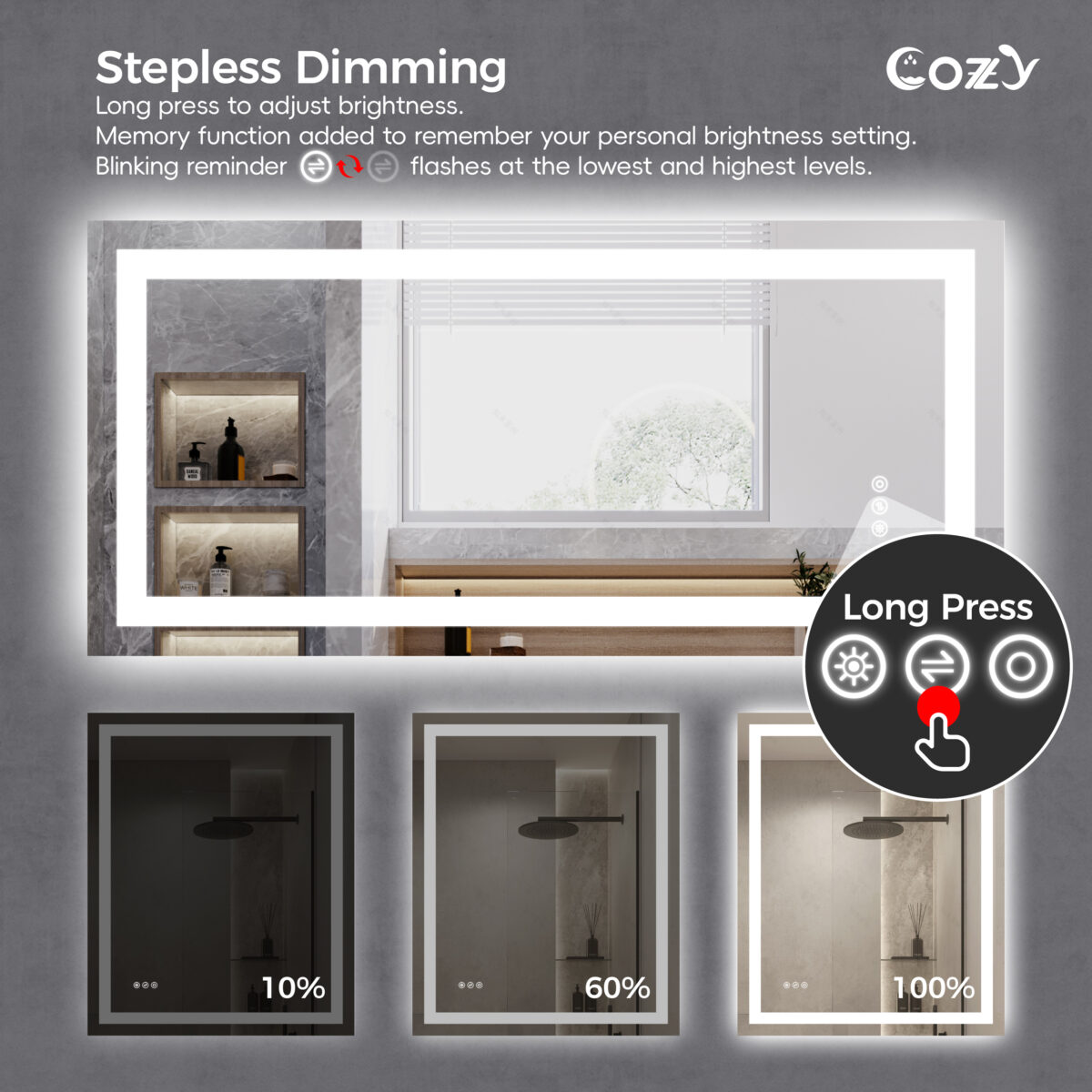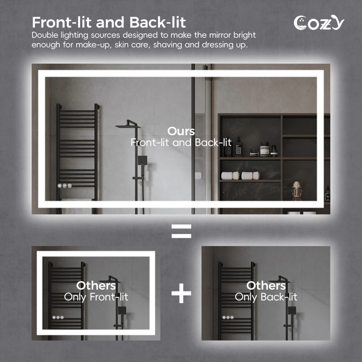 72″x48″ LED Bathroom Mirror, Front-Lit and Back-Lit, Light Srtip Unseen When Turned Off, Color Tem Adjustable, Stepless Dimmable, 3 Colors CRI90+, Brightness Memory, Shatter-Proof,Anti-fog LED Vanity Mirror, Easy Installation,IP44 Waterproof, LM25-FB-7248