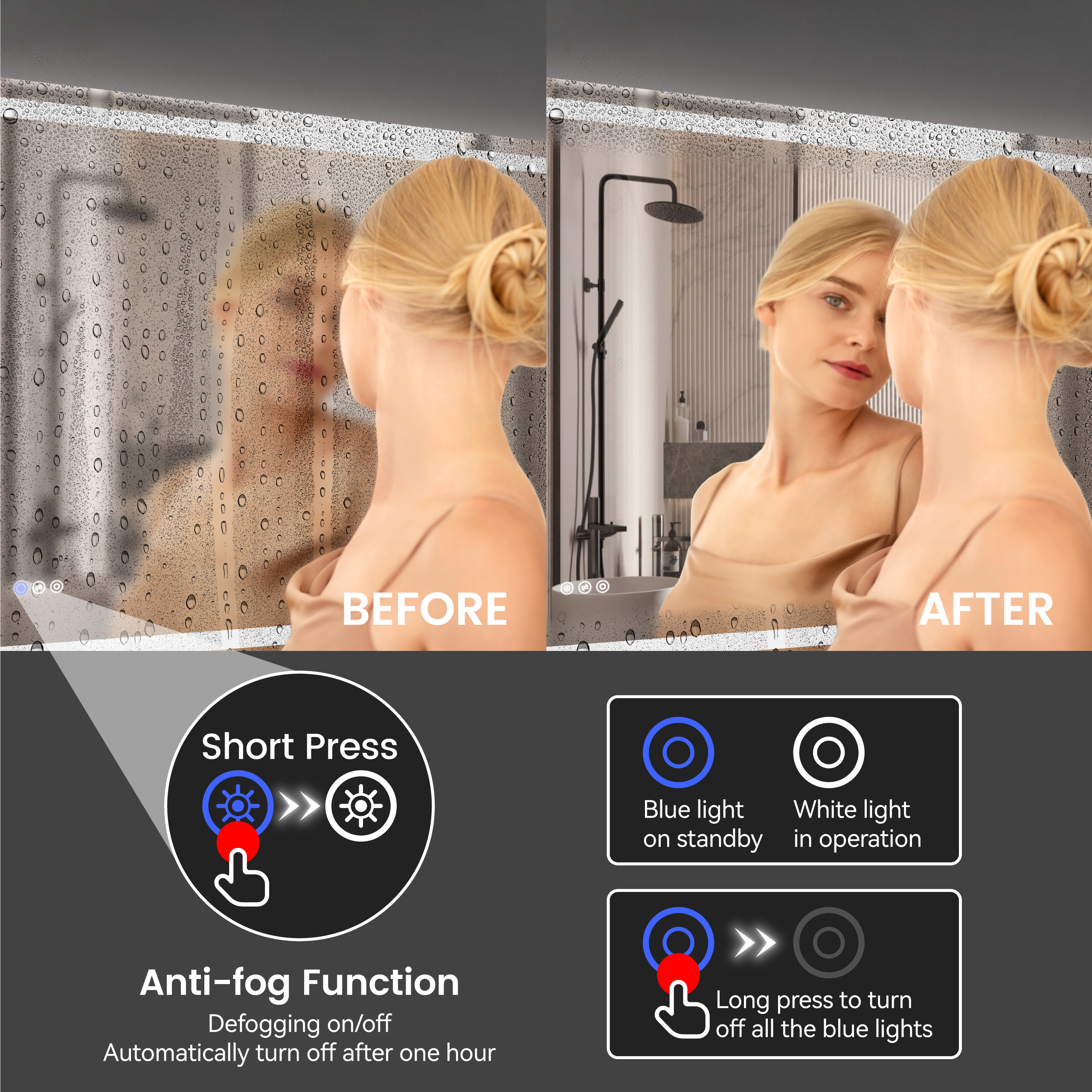 Safe & Fast Defogging: Clear and fog-free mirror surface, saving you the hassle of frequent cleaning. The defogger automatically turns off after 1 hour, saving energy and ensuring safety all the time.