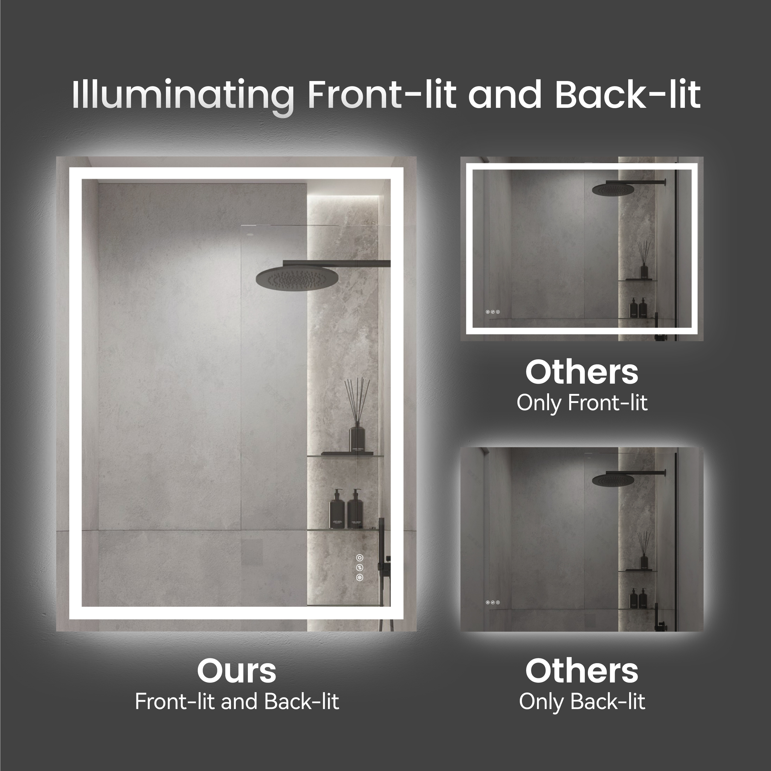 28″x36″ LED Bathroom Mirror, Front-Lit and Back-Lit, Light Srtip Unseen When Turned Off, Color Tem Adjustable, Stepless Dimmable, 3 Colors CRI90+, Brightness Memory, Shatter-Proof,Anti-fog LED Vanity Mirror, Easy Installation,IP44 Waterproof, LM27-AL-2836