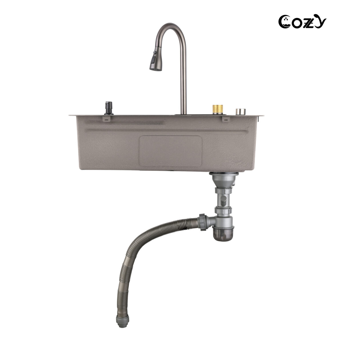 - Made of high-quality stainless steel with a special coating on the surface, this black sink is not only more durable but also easy to clean, resisting stains and grime over time.