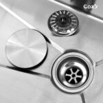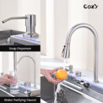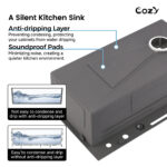 - The sink includes a soap dispenser for simplified kitchen cleaning tasks.