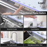 - Creative piano buttons allow for independent control of the waterfalls outlet, cup washer, pull-out faucet, and raindance water flow.