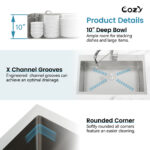 - Single bowl design provides ample space for efficient dishwashing and food preparation.