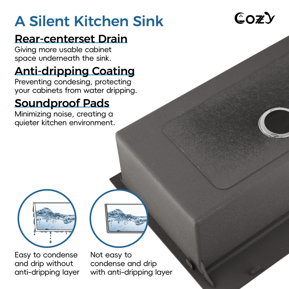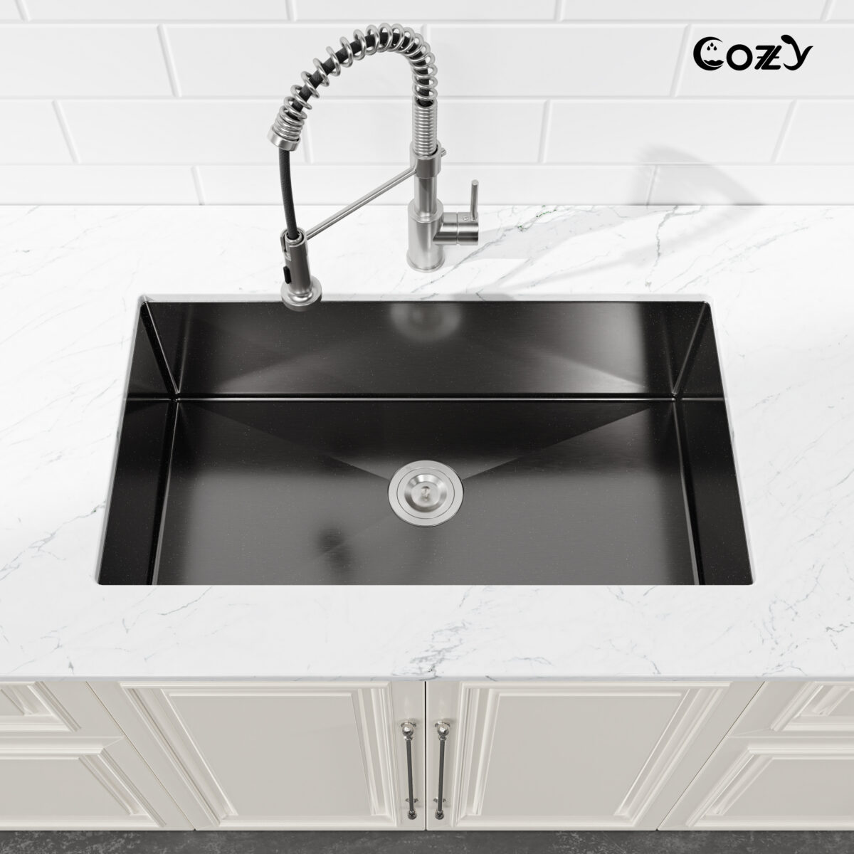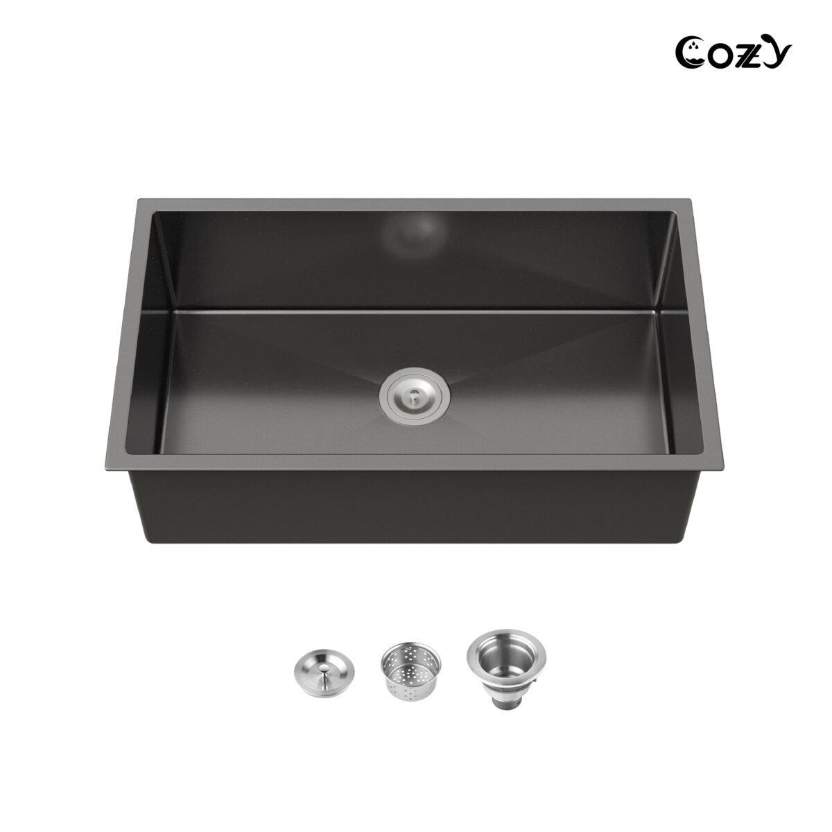 This single bowl kitchen sink is crafted from durable 304 stainless steel, offering exceptional corrosion resistance and a sleek, black steel finish. The scratch-resistant surface ensures easy cleaning and a lasting pristine look. Its spacious design provides ample room for dishwashing and food preparation, making kitchen tasks more efficient. The undermount installation creates a seamless and modern aesthetic, enhancing the overall look of your kitchen.