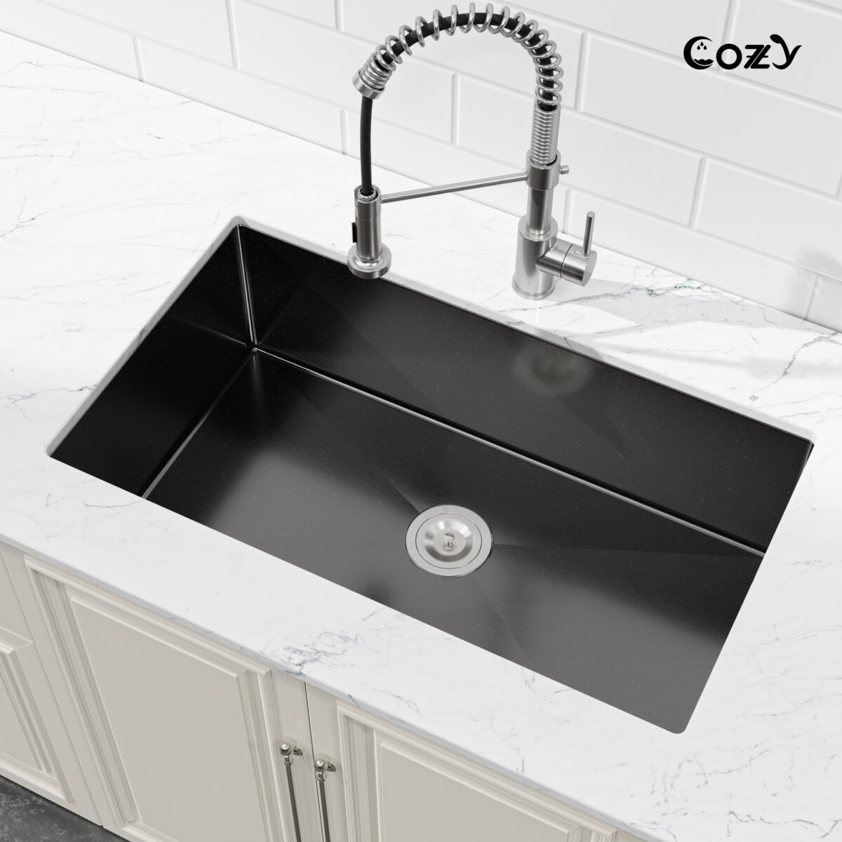 Be the first to review “33×19 inch Black Stainless Steel Single Bowl Undermount Kitchen Sink with US Standard Drain and Hook, Model SS-BL04D-331912” Cancel reply