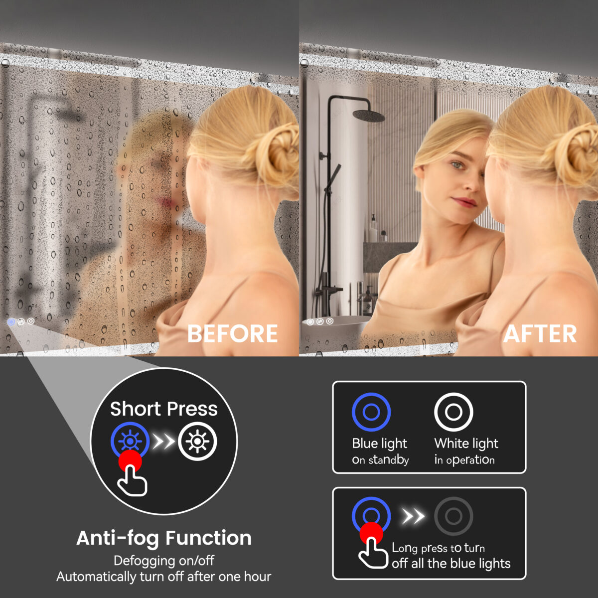 Safe & Fast Defogging: Clear and fog-free mirror surface, saving you the hassle of frequent cleaning. The defogger automatically turns off after 1 hour, saving energy and ensuring safety all the time.