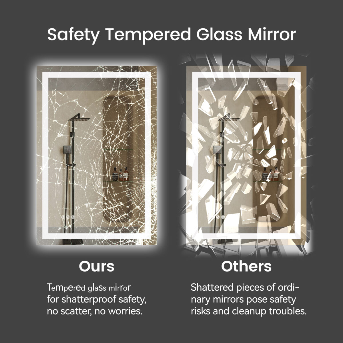 20″x28″ LED Bathroom Mirror, Front-Lit and Back-Lit, Light Srtip Unseen When Turned Off, Color Tem Adjustable, Stepless Dimmable, 3 Colors CRI90+, Brightness Memory, Shatter-Proof,Anti-fog LED Vanity Mirror, Easy Installation,IP44 Waterproof, LM27-AL-2028
