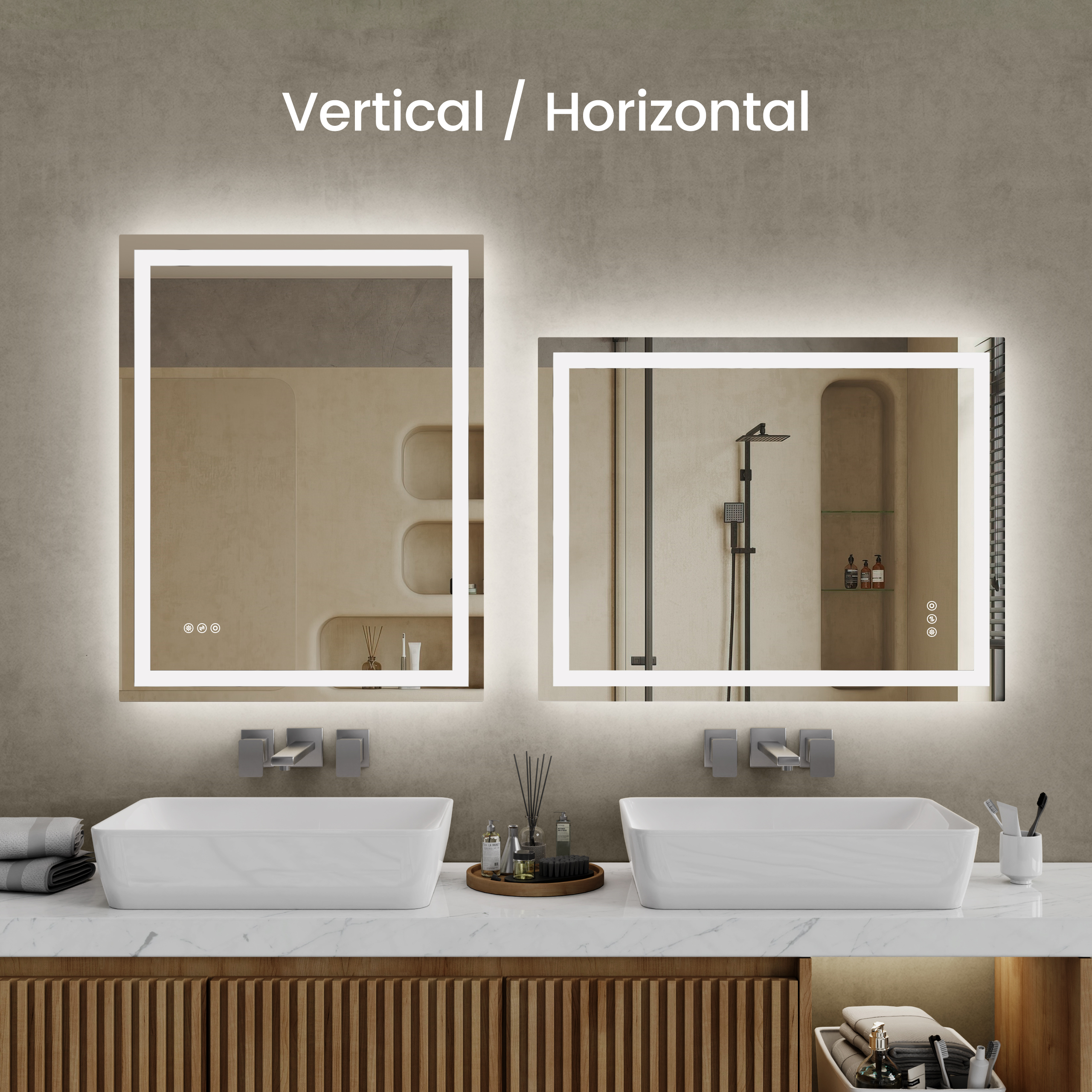 24″x32″ LED Vanity Mirror, Front & Back Lit, Color Temp Adjustable, Dimmable, Anti-Fog, Waterproof, CRI90+, Shatter-Proof, Easy Install