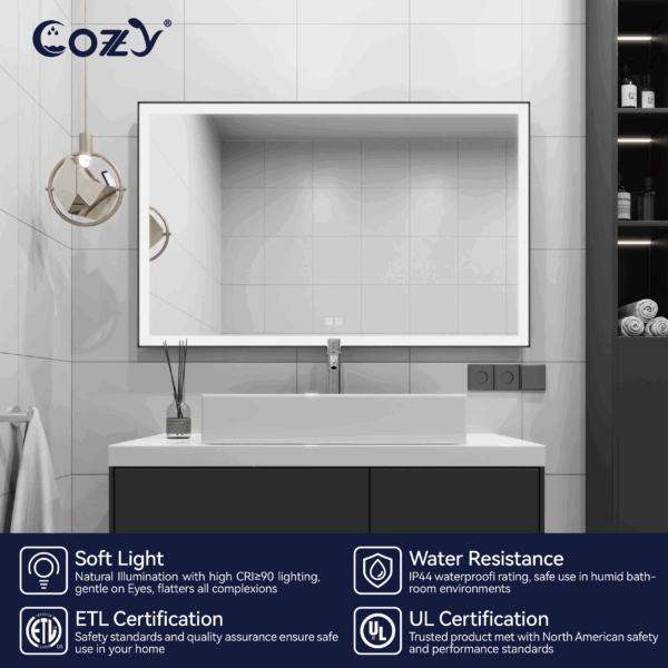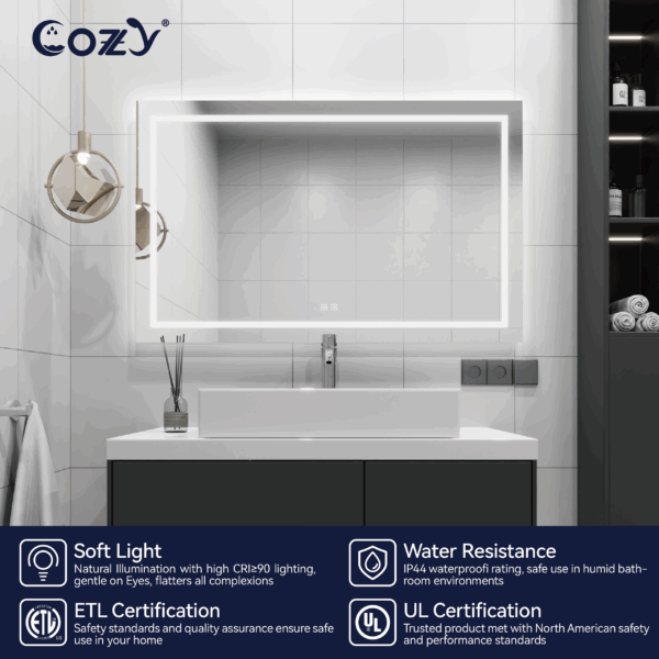 Touch Sensors & Memory: Lighted touch buttons make operation a breeze, and intelligent memory functions will remember your preferred lighting settings, even after turning the mirror off and on.