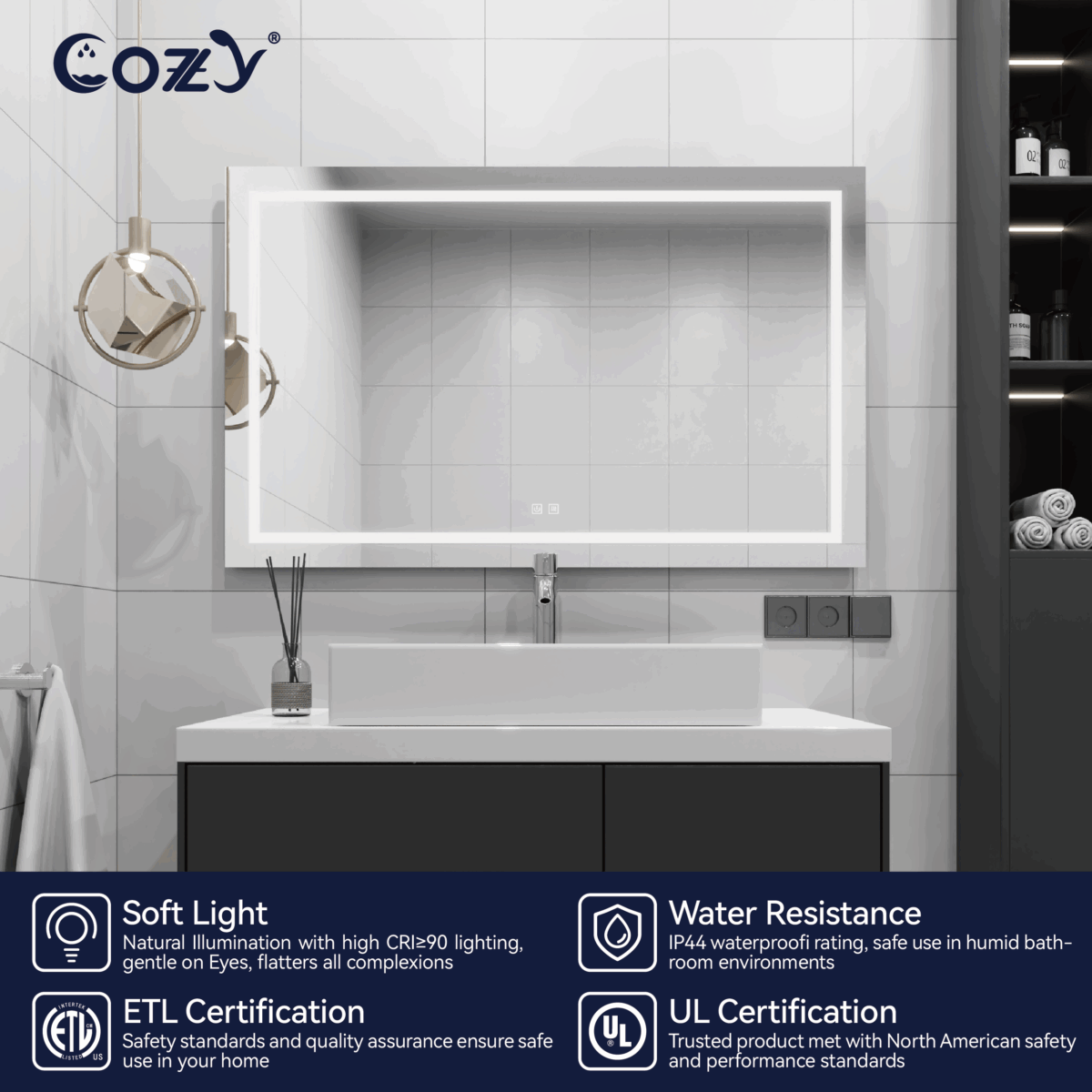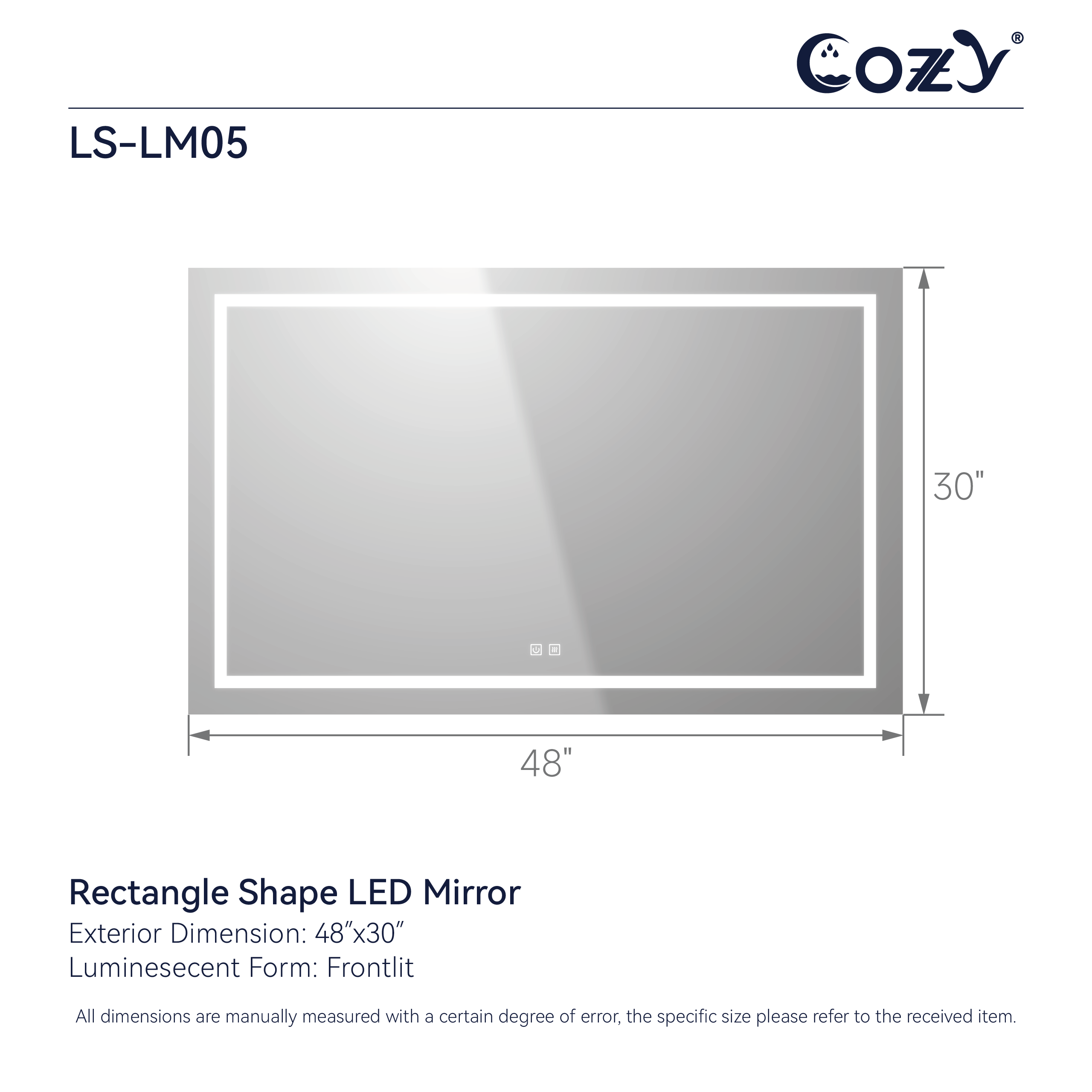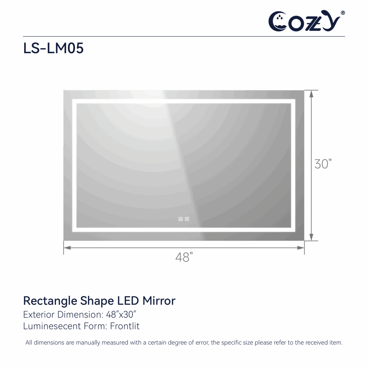 COZY 48″x30″ LED Bathroom Mirror, Front Light, Stepless Dimmable, 3 Colors CRI90+, Memory, Shatter-Proof,Anti-fog LED Vanity Mirror for Wall, LS-LM05