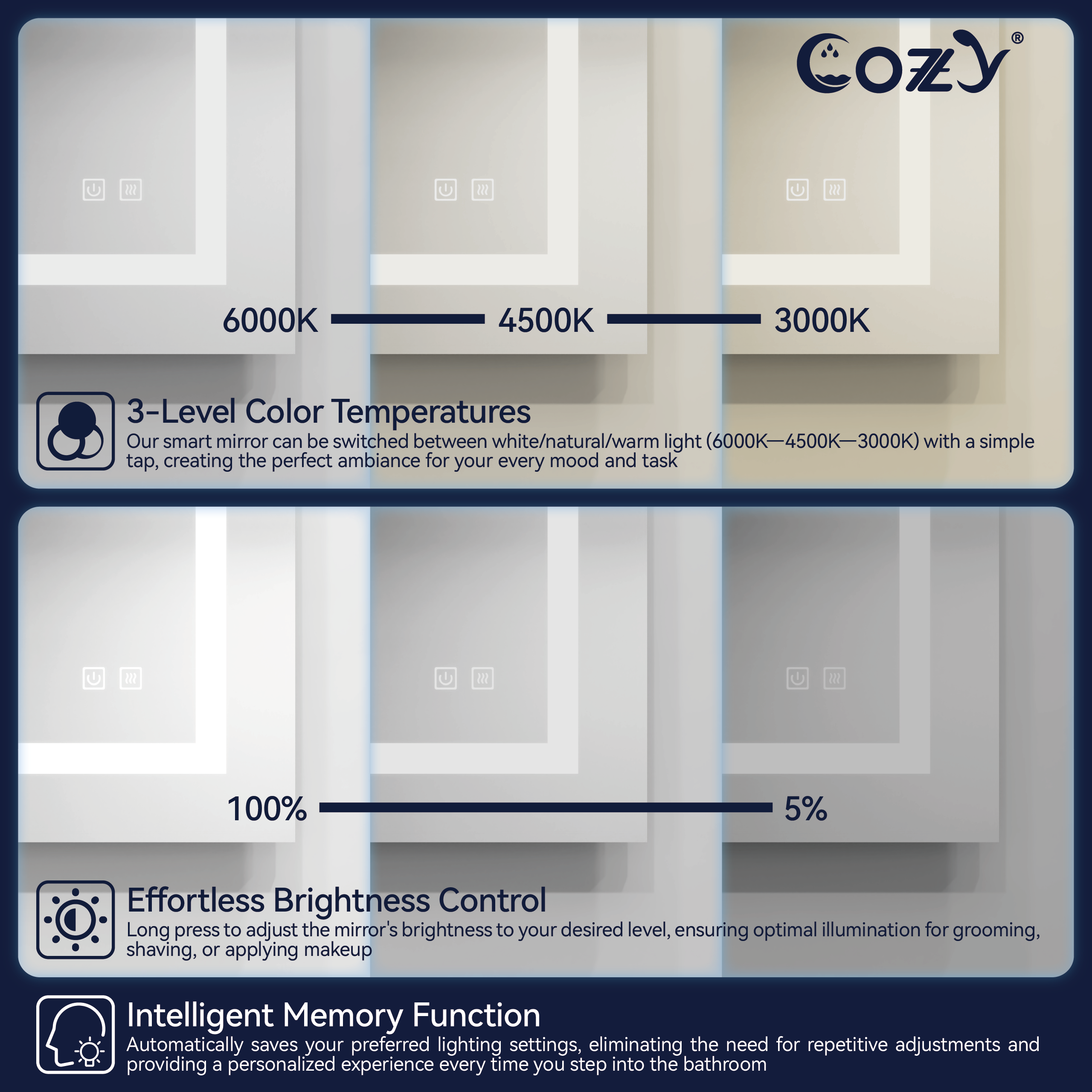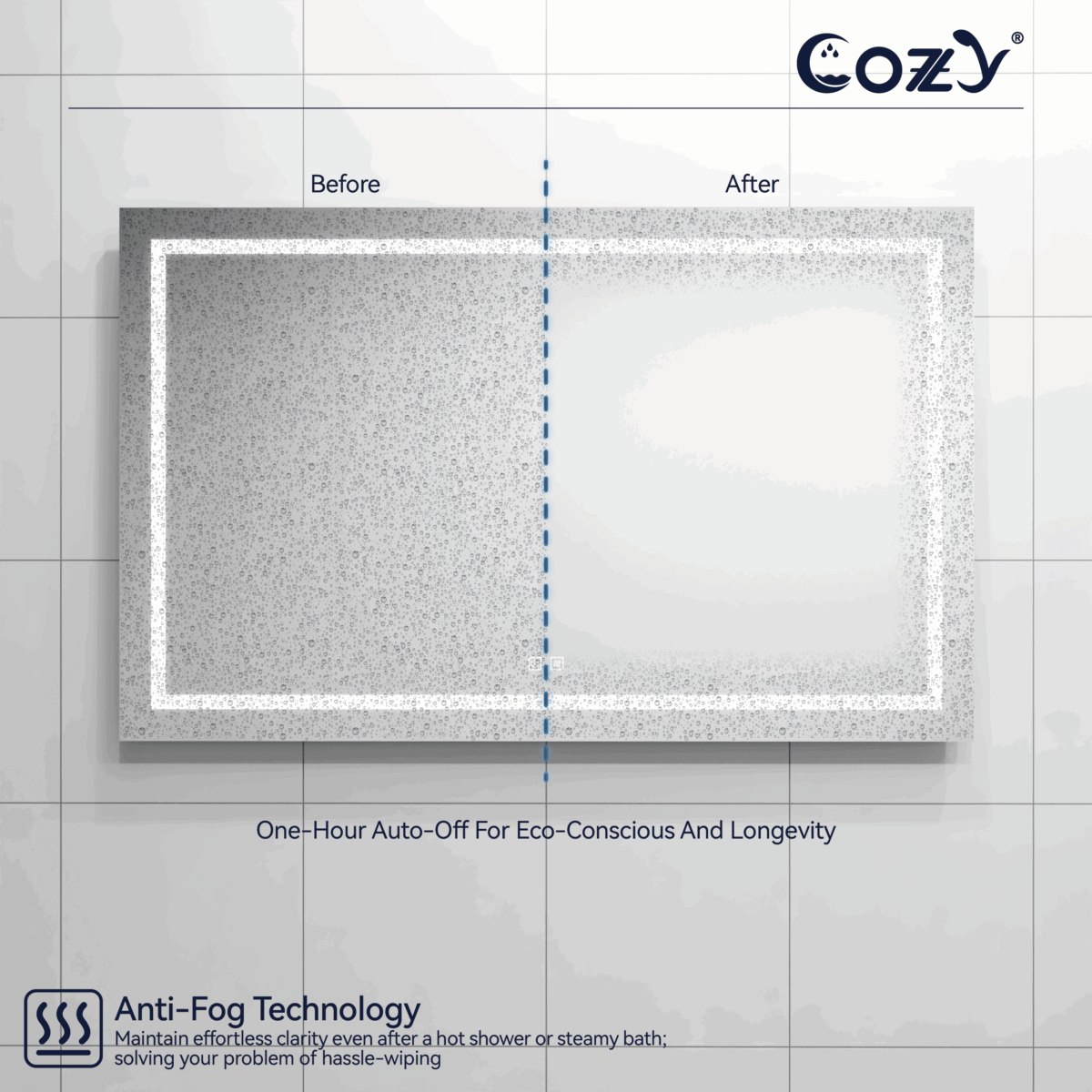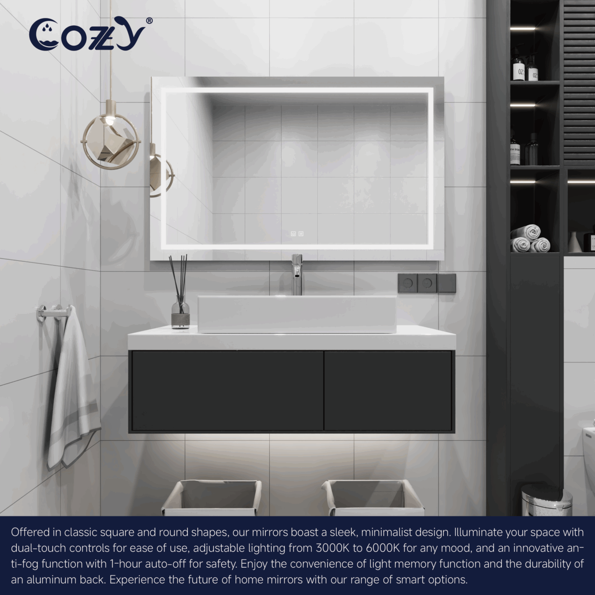 COZY 48″x30″ LED Bathroom Mirror, Front Light, Stepless Dimmable, 3 Colors CRI90+, Memory, Shatter-Proof,Anti-fog LED Vanity Mirror for Wall, LS-LM05