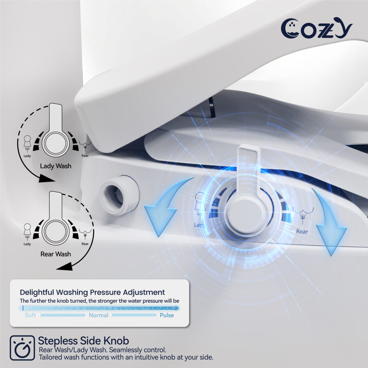 COZY Bidet Toilet Seat, Non-Electric Swash Ecoseat, Rear & Feminine Wash, Adjustable Water Pressure, Antibacterial Seat, Soft Close