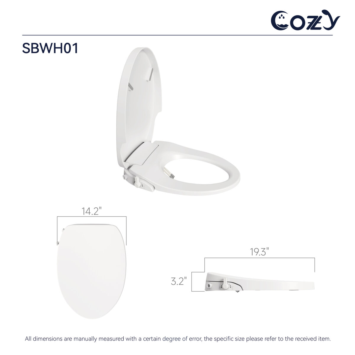 COZY Smart Bidet, Heated Seat, Adjustable Temperature, Feminine Wash, Self-Cleaning Nozzle, Night Light, Slow Close Lid, LS-SBWH04