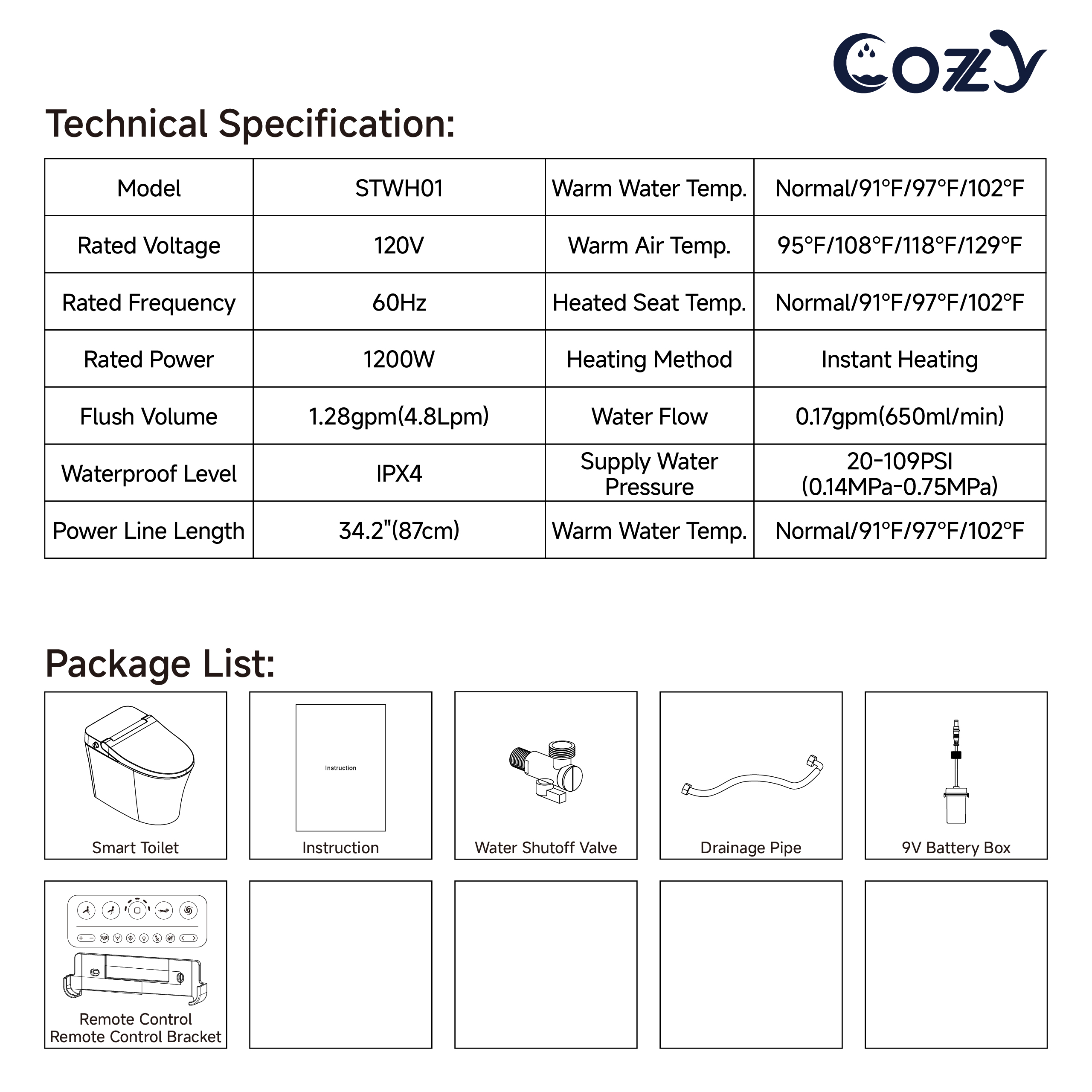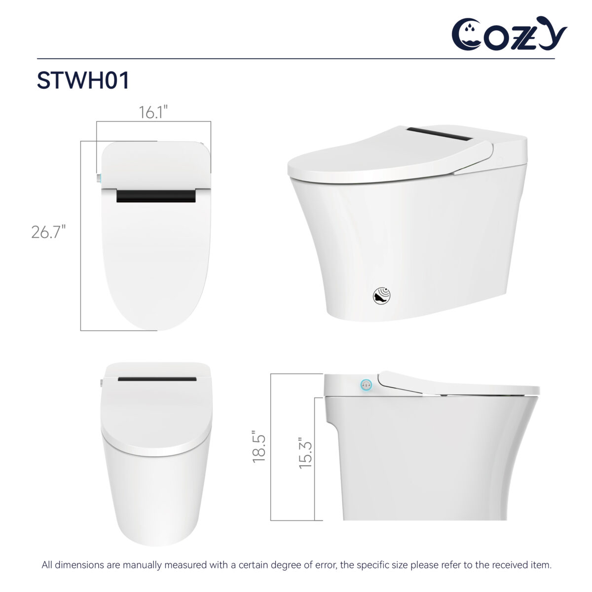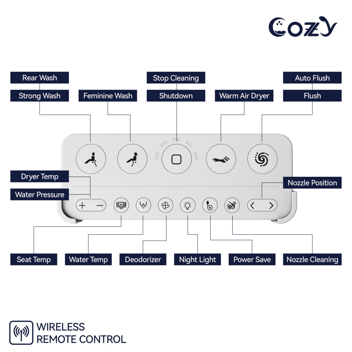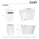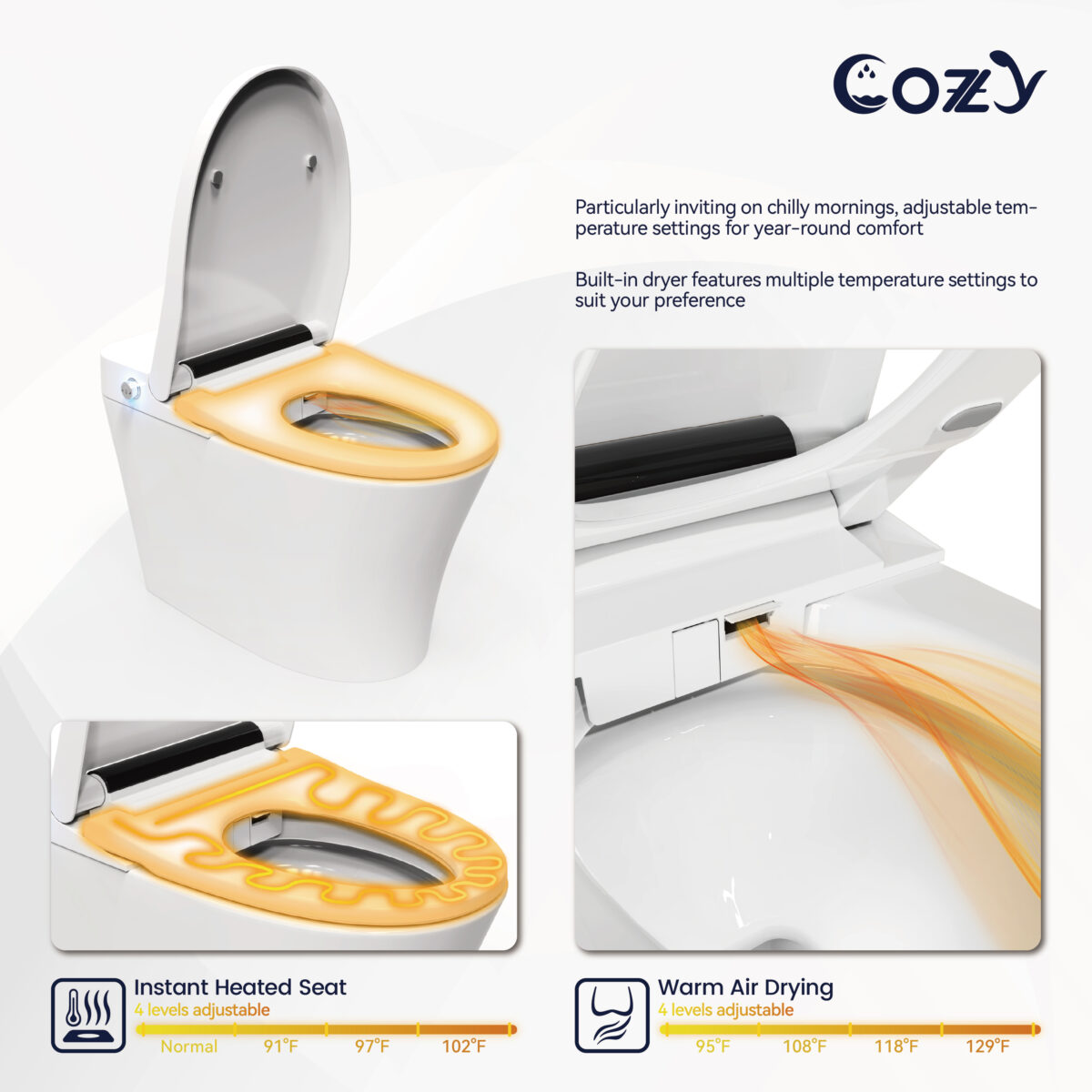 COZY Smart Toilet, Auto Flush, Foot Sensor For Auto Seat, Instant Heat, Dryer, Side Knob, Night Light, Remote Control, Deodorizer, LS-STWH01