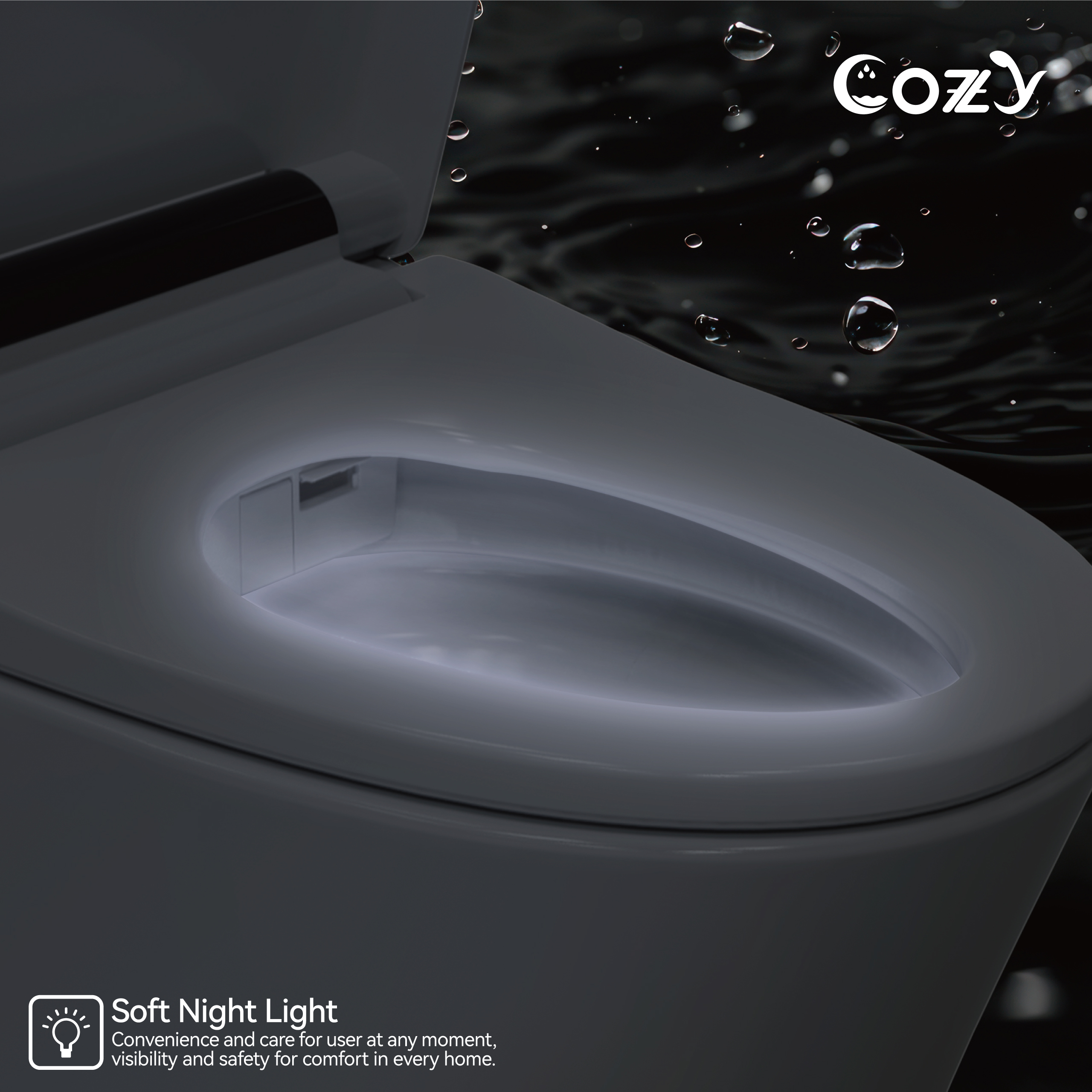 Eco-Conscious Design: The COZY Smart Bidet Toilet prioritizes the environment with a water-saving dual flush (4.8L/3.8L) design. It also features anti-countercurrent protection and an anti-seize glaze toilet bowl for effortless cleaning.