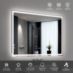 60″x48″ LED Bathroom Mirror, Front-Lit and Back-Lit, Light Srtip Unseen When Turned Off, Color Tem Adjustable, Stepless Dimmable, 3 Colors CRI90+, Brightness Memory, Shatter-Proof,Anti-fog LED Vanity Mirror, Easy Installation,IP44 Waterproof, LM24-FB-6048