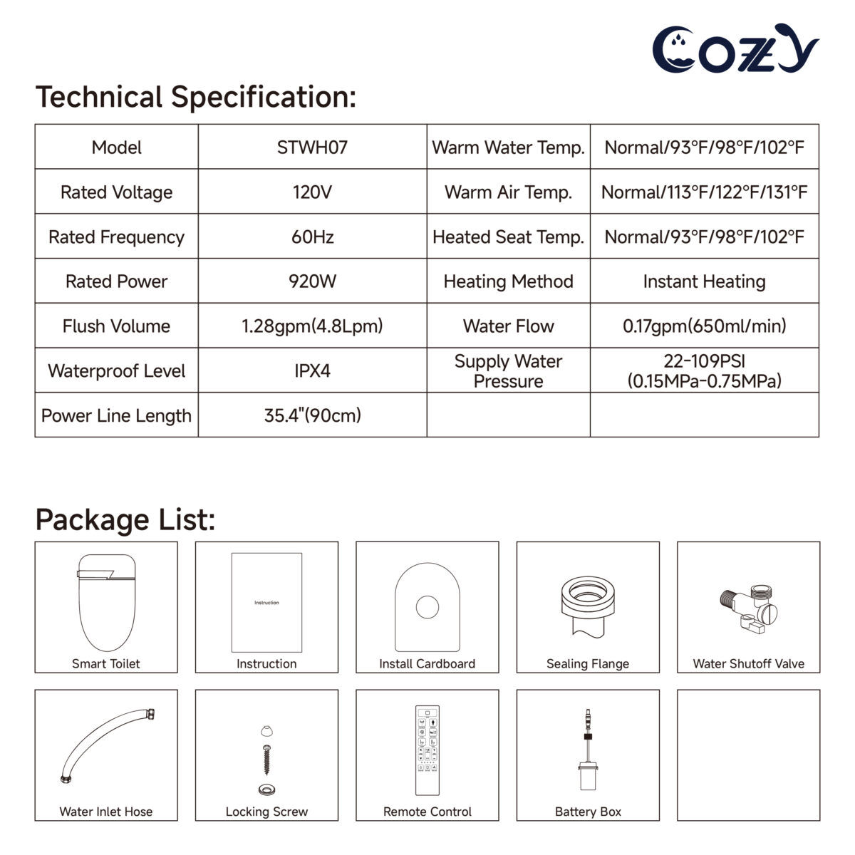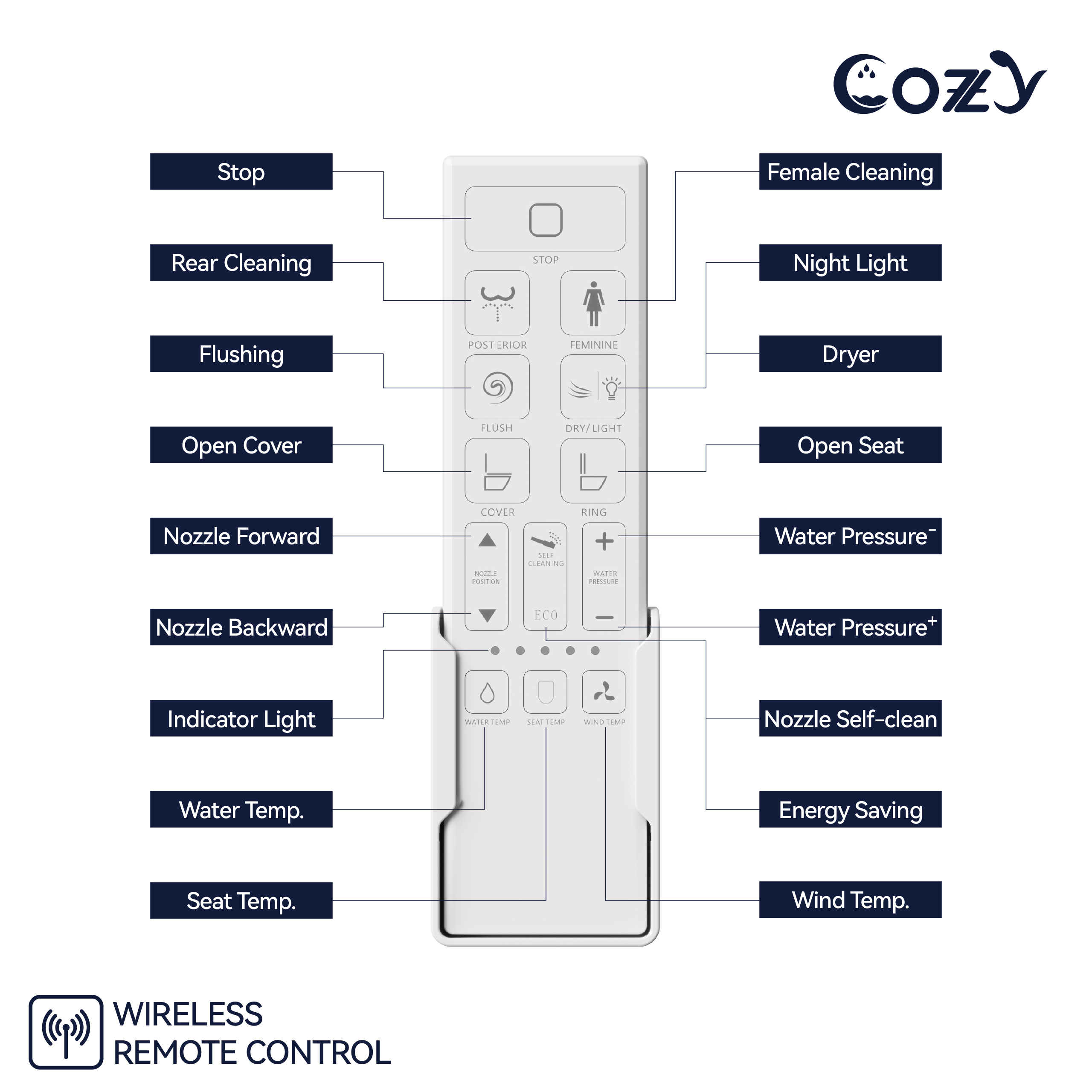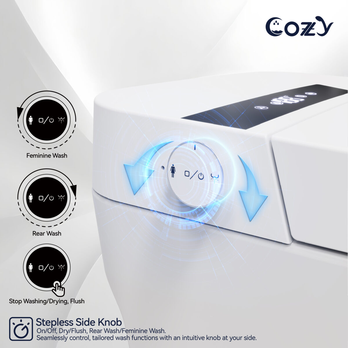 COZY Smart Toilet, Auto Flush, Foot Sensor For Auto Seat, Instant Heat, Dryer, Side Knob, Night Light, Remote Control, Deodorizer, LS-STWH01