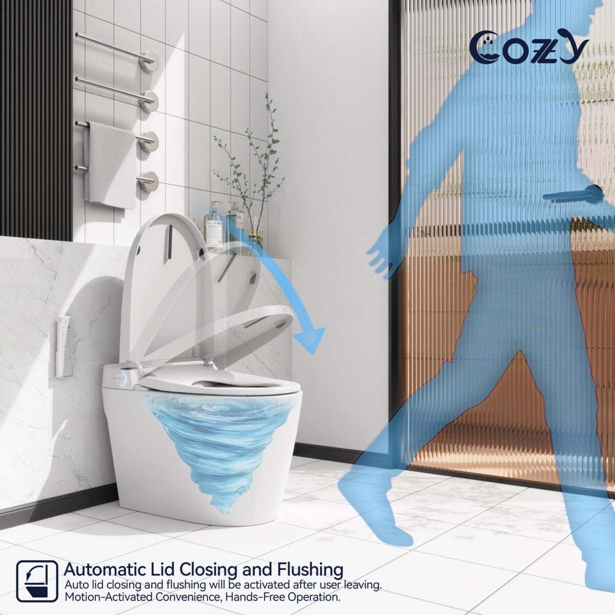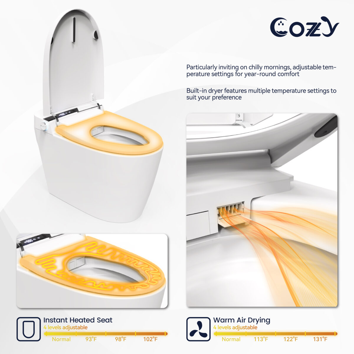 COZY Smart Toilet, Auto Flush, Foot Sensor For Auto Seat, Instant Heat, Dryer, Side Knob, Night Light, Remote Control, Tankless, Deodorizer, LS-STWH02