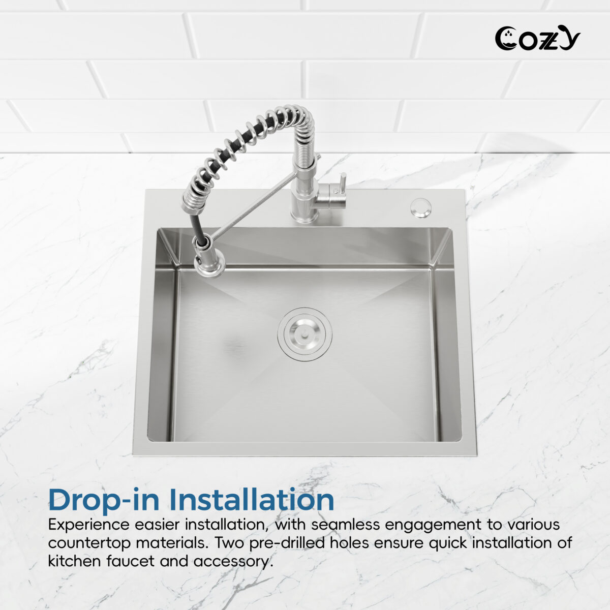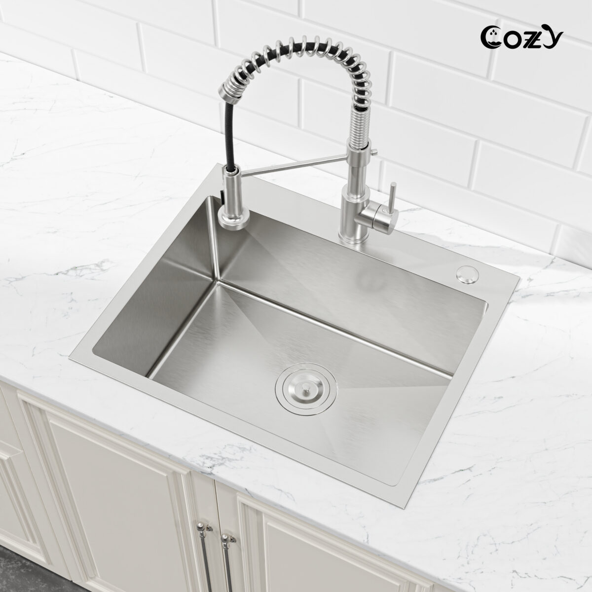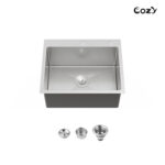 Be the first to review “Stainless Steel Single Bowl Kitchen Sink 23×19 inch, 1-Piece Overmount Brushed with US Drain & Hook, SS-BR02D-231908” Cancel reply