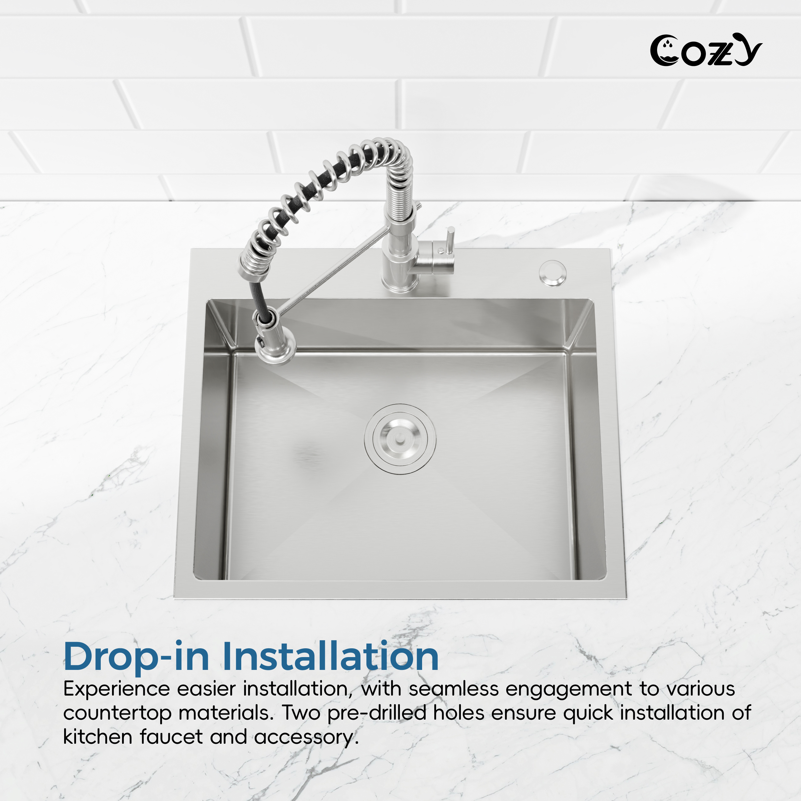 - Single bowl design offers ample space for efficient dishwashing and food preparation.